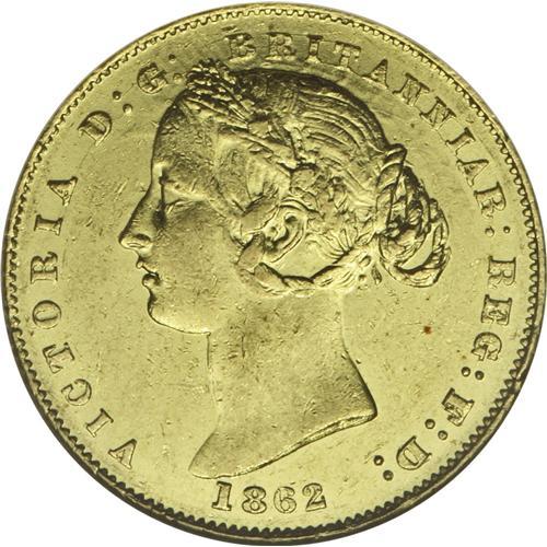 Victoria gold Sovereign 1862, KM4, AU55 NGC, highly lus