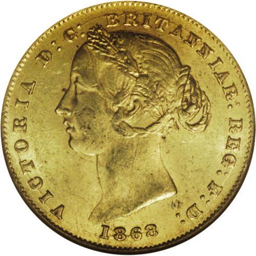 <B>Victoria gold Sovereign 1868, </B></I>KM4, AU58 NGC RBA, a choice example with light patina and virtually full mint luster.<BR><BR><b>Shipping:</b> Coin/Currency (<a target="_blank" href="http://www.heritageauctions.com/common/shipping.php">view shipping information</a>)