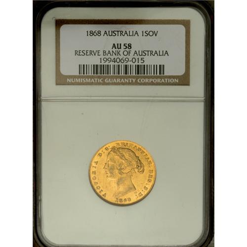 Victoria gold Sovereign 1868, KM4, AU58 NGC RBA, a choi