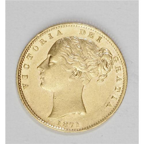 Victoria gold Sovereign 1871S, KM6, shield reverse, inc