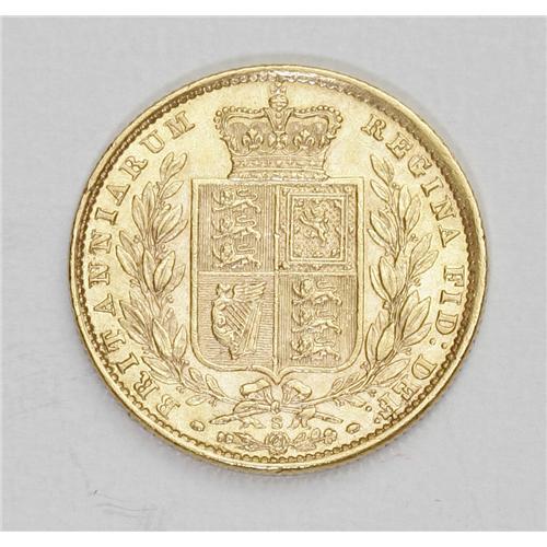 <B>Victoria gold Sovereign 1871S, </B></I>KM6, shield reverse, incuse WW, choice lustrous XF-AU, popular first date of the type.