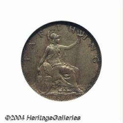 Victoria pattern bronze Farthing 1896, Peck-2070 (Very Rare). Small bust entirely circled by obverse legend. Olive-brown toning. Seldom available, a real find for the pattern or farthing collector!From the Osage Collection. Important notice: Heritage usually auctions material at the rate of 200-250 lots per hour. On some occasions eBay Live bid software or the Internet may not be able to keep up with the pace of the auction. We recommend placing a realistic absentee bid now as insurance to avoid disappointment. Occasionally the auctioneer may eliminate or reject an eBay Live bid, and the auctioneer may also reopen a lot after the close of the eBay live bidding (usually because we missed an audience bid), and may reject your bid even if it shows you as the winning bidder. By bidding via eBay Live, you agree that Heritage may award the lot to another bidder at its sole discretion under the circumstances described above or any other reasonable circumstances. Also please note that all Heritage lots purchased through eBay Live carry a 20% Buyer's Premium. Please make sure you read the Terms and Conditions before you bid.