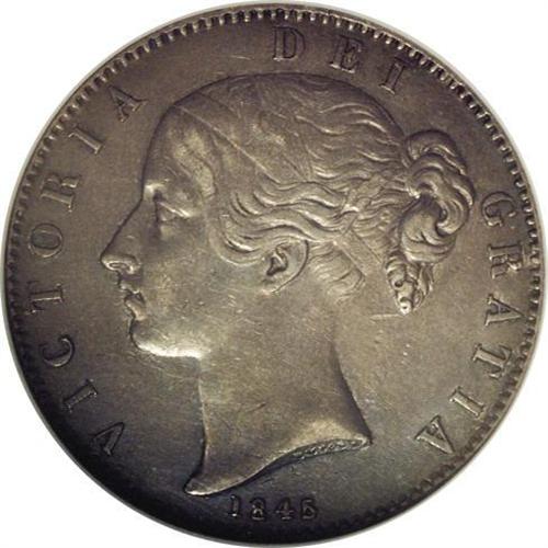 Victoria silver Crown, 1845. Young Head. S-3882. Edge n