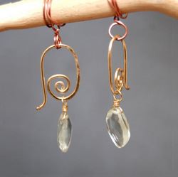 Metal: Gold Removable A-grade stones of your choice (green amethyst, kyanite, and pale amethyst shown) on small spiral posts, about 1-1/4". Available in either 14K gold-filled, rose gold-filled, or sterling silver. All jewelry is entirely handmade in our studio in New York.