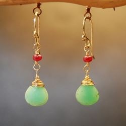 Metal: Gold Ruby linked with faceted chrysoprase, about 1-1/4". Available in either 14K gold-filled, rose gold-filled, or sterling silver. All jewelry is entirely handmade in our studio in New York.