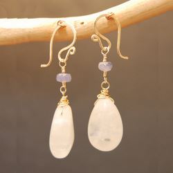 Metal: Silver Tanzanite and moonstone, about 1-1/2". Available in either 14K gold-filled, rose gold-filled, or sterling silver. All jewelry is entirely handmade in our studio in New York.