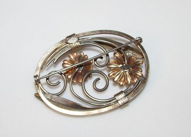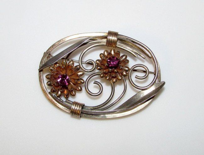 For your consideration is this fabulous vintage vermeil 12K gold over 800 silver brooch in wonderful vintage condition. This beautiful Victorian piece offers a gorgeous floral design accented with 2 lovely amethysts. The brooch measures about 2" wide by about 1 1/2" tall and is marked "20-12GP" and "800 silver" . A gorgeous piece of vintage jewelry to add to any collection!