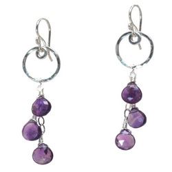 Metal: RoseGold Dark amethyst on hammered circles, about 1-3/4". Available in either 14K gold-filled, rose gold-filled, or sterling silver. All jewelry is entirely handmade in our studio in New York.