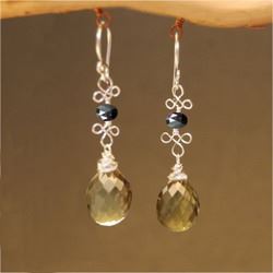 Metal: GoldBlack spinel and whiskey quartz with filagree wire, about 1-1/2".Available in either 14K gold-filled, rose gold-filled, or sterling silver. All jewelry is entirely handmade in our studio in New York.