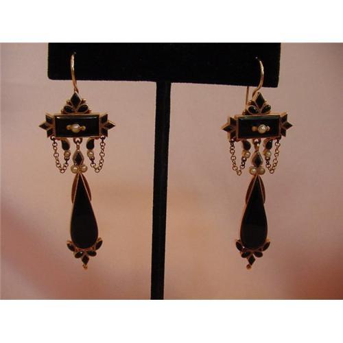 <tr><td>Title:Victorian 14K Jet and Seed Pearl Dangle</td></tr>