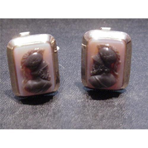 Wonderful Victorian Circa 1890 14Kt Yellow Gold and Hardstone Cameo Cufflinks each Bezel set with a Warrior in Profile in fabulous condition. Airplane backs. Black/Brown/White hardstone cameos. Great details. Wonderful condition. Very impressive.