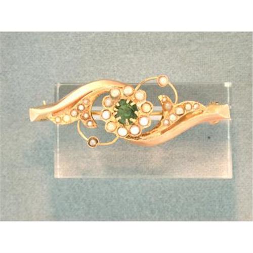<tr><td>Title:Victorian 14k Pin Maine Tourmaline and Seed </td></tr>