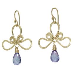 Metal: RoseGold Your choice of stone on swirled shapes (aquamarine crystal and iolite shown), about 1-1/4" long. Available in either 14K gold-filled, rose gold-filled, or sterling silver. All jewelry is entirely handmade in our studio in New York.