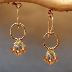 Metal: Silver Citrine on small hammered circles, about 1-1/4" long. Available in either 14K gold-filled, rose gold-filled, or sterling silver. All jewelry is entirely handmade in our studio in New York.