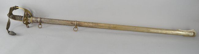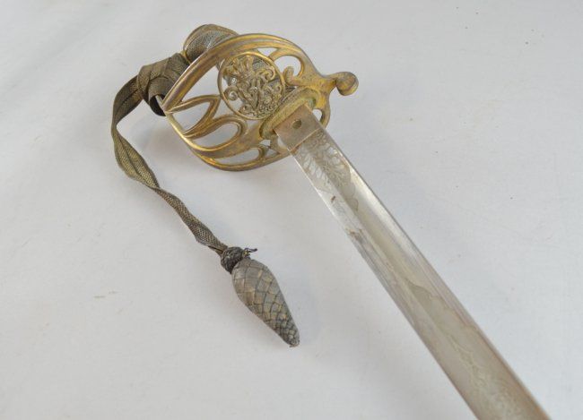 Victorian 1845 pattern sword with engraved blade by J Reilly and Son Dublin, Metal scabbard, shagreen grip, 41" overall