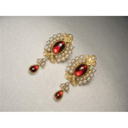 <tr><td>Title:Victorian 18K Garnet Seed Pearl Earrings</td></tr>