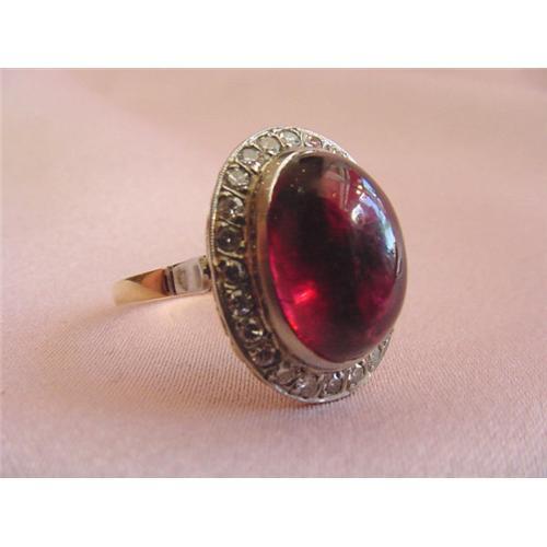 <tr><td>Title:Victorian 18K Garnet and Diamond Ring</td></tr>