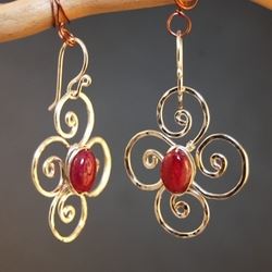 Metal: GoldHammered swirl flowers with ruby, about 1-1/2" long.Available in either 14K gold-filled, rose gold-filled, or sterling silver.All jewelry is entirely handmade in our studio in New York.