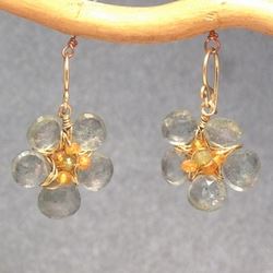 Metal: GoldMoss aquamarine and mandarin garnet flowers, about 1-1/4". Available in either 14K gold-filled, rose gold-filled, or sterling silver. All jewelry is entirely handmade in our studio in New York.