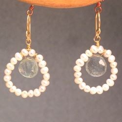 Metal: Silver Ivory pearls and moss aquamarine, about 1-1/4". Available in either 14K gold-filled, rose gold-filled, or sterling silver. All jewelry is entirely handmade in our studio in New York. ________________________________________________________________________________________ For matching designs, see: