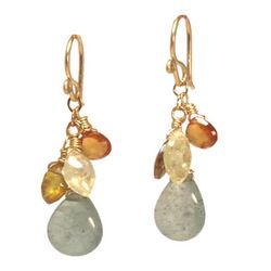 Metal: RoseGold Mandarin garnet and moss aquamarine, about 1-1/2". Available in either 14K gold-filled, rose gold-filled, or sterling silver. All jewelry is entirely handmade in our studio in New York.