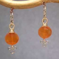 Metal: GoldCarnelian coin with filagree wire, about 1-1/4" long.Available in either 14K gold-filled, rose gold-filled, or sterling silver. All jewelry is entirely handmade in our studio in New York.