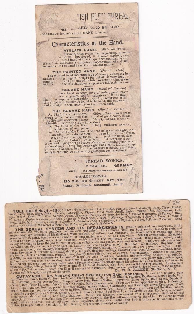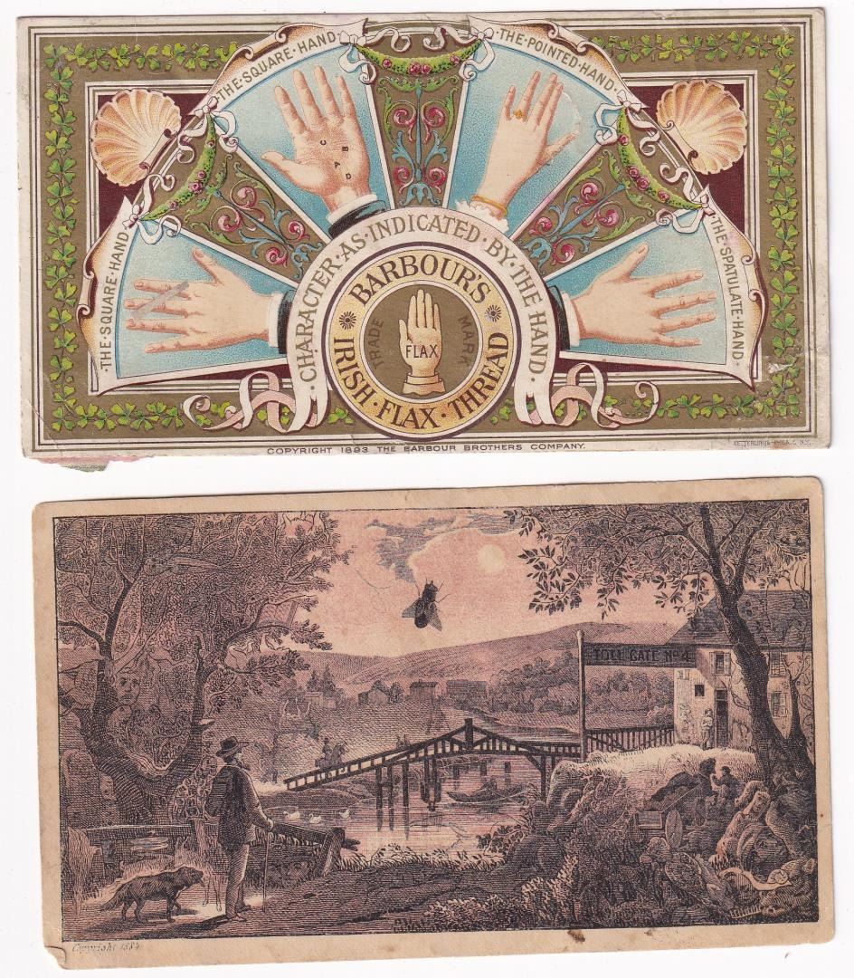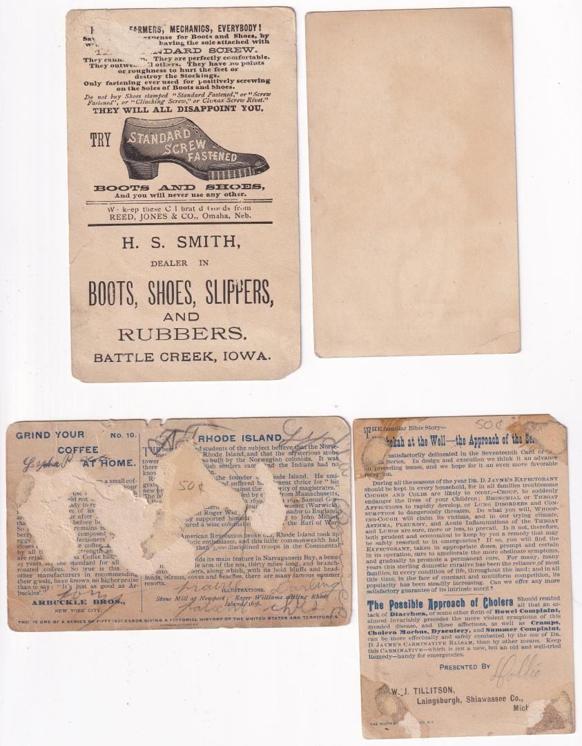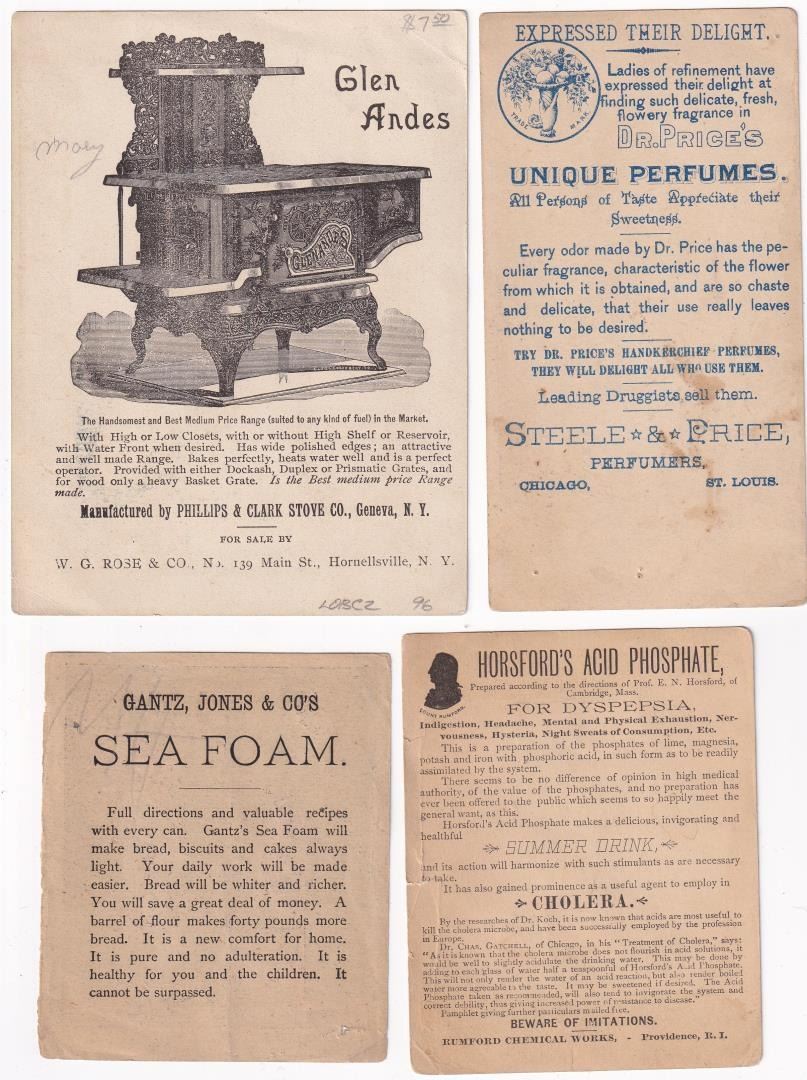Largest is 4 1/2" by 6". These lithographs were used by businesses to promote various products, including stoves, perfumes, shoes, and health tonics.