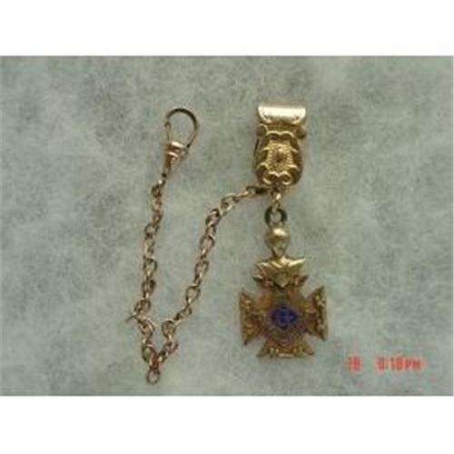 Here is a vintage Victorian Antique Watch chain and fob. There is a blue G enamel on the front. I'm thinking this is some organization, if anyone out there knows please email me so that I may correct this. The clasp is signed FMCO This could be gold filled but I dont know. This measures 6 inches