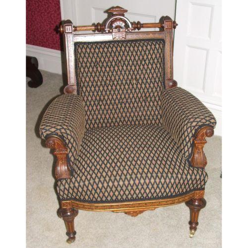 Possibly American. Victorian. Late 19th century. Mixed woods. Entire chair is trimmed in gold gilt paint. 34" high