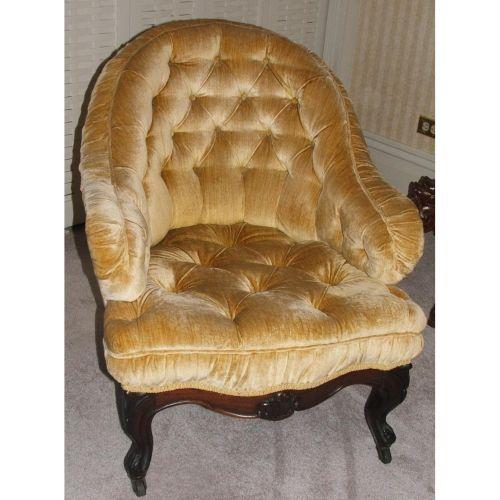 Victorian. Late 19th century. Mixed woods. Upholstered. 29 1/2" high