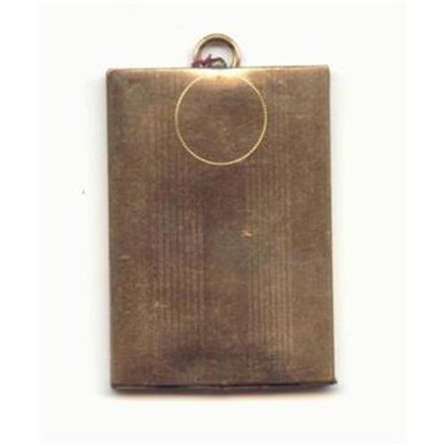 This is an interesting large sized locket. When closed it measures 1 3/4 inches tall and 1 1/4 inches wide. It is lightly engraved on the front in a geometric design. The two sides open up and in the center is a two sided standup picture frame. The locket does show some dents and dings but is still very wearable. It is signed, B. MFG CO. on the inside.