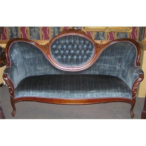 <tr><td>Title:Victorian Blue Velvet Upholstered Sofa</td></tr>