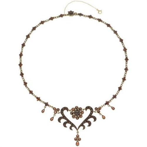<B>Victorian Bohemian Garnet, Yellow Metal Necklace</B></I><BR><BR>The floral and heart motif necklace features clusters of round-shaped Bohemian garnets linked together, suspending pear and round-shaped Bohemian garnets, set in yellow metal. Gross weight 15.00 grams.<BR>Length: 15-1/2 inches<BR><BR> <B>Condition Report:</B> Good condition.<BR><BR><b>Shipping:</b> Miscellaneous Collectibles, Smal (<a target="_blank" href="http://www.heritageauctions.com/common/shipping.php">view shipping information</a>)