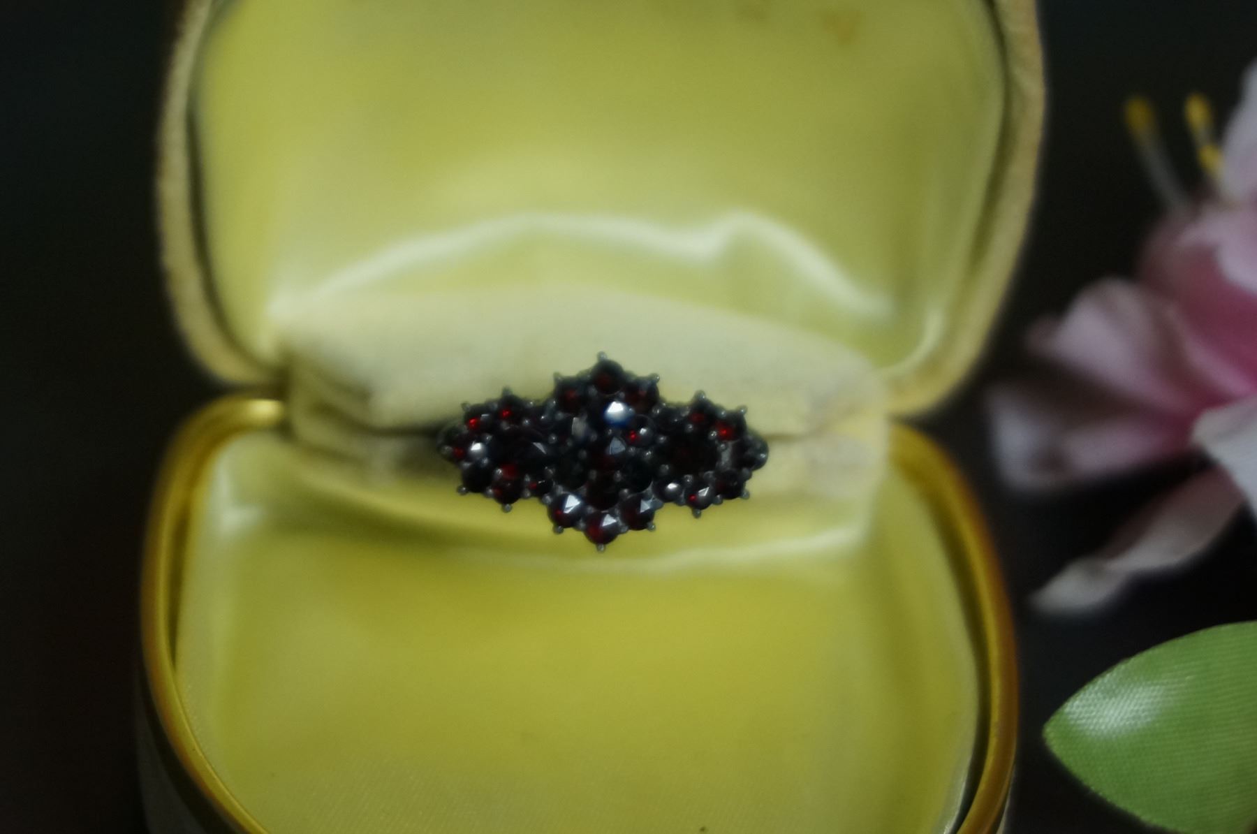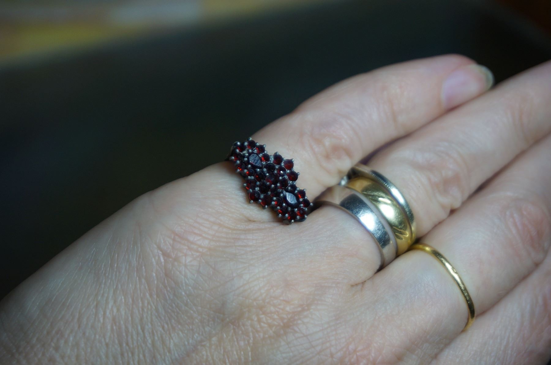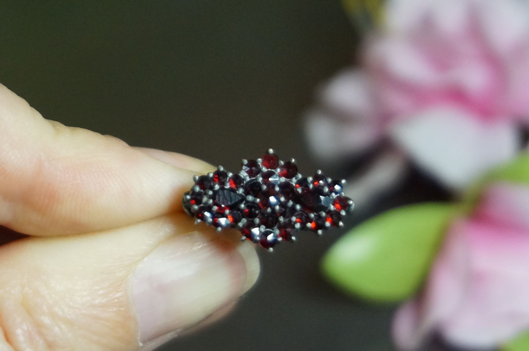 the ring has 29 natural rose cut garnets in variety of shape