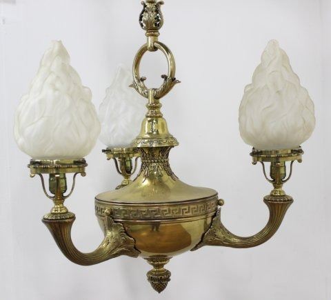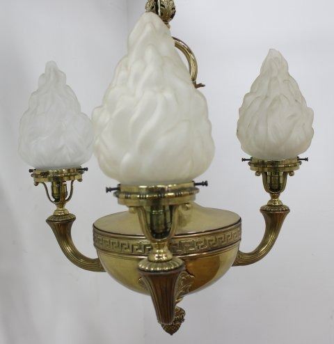 Flame globes. Approx. 44" H x 25" diameter. (SF569) Shades damaged.