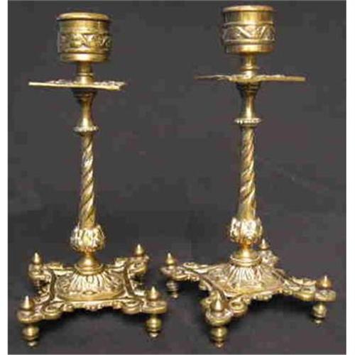 <table width="100%" border="0" cellspacing="0" cellpadding="4"><tr><td><em> </em></td></tr><tr> <td width="100%"> There is a very slight "lean" to one foot on one stick and a tiny wobble to the other. The detail on these lovely old cast brass candlesticks is very intricate. Like all good old cast pieces they unscrew at the base and at the top. </td></tr><tr> <td> </td></tr><tr> <td>Reference #: 29842</td></tr><tr><td>Condition:Used</td></tr><tr><td>Year:1890</td></tr><tr><td>Country:England</td></tr><tr><td>Height:6.5</td></tr><tr><td>Depth:3</td></tr><tr><td>Width:3</td></tr><tr><td>Title:Victorian Brass Candleticks c1890</td></tr><tr><td>Style:Victorian</td></tr><tr><td>Materials:Brass</td></tr><tr><td>Type:Victorian</td></tr><tr><td>Location:Denver Colorado</td></tr></table>