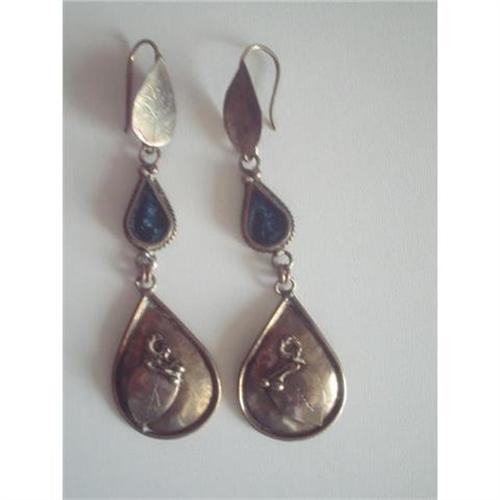 So lovely and Unique! Victorian Brass Earrings with Bezel Set Lapis</em></td>