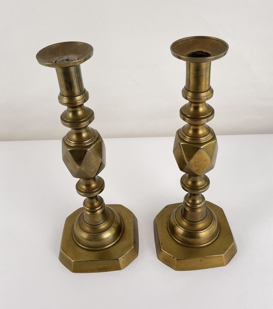 Push up inserts. Nice old set. 12 1/2" tall.
