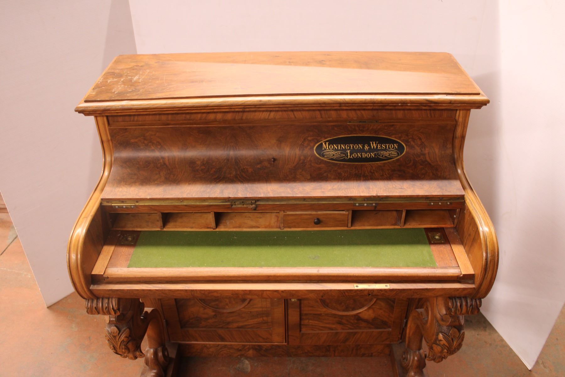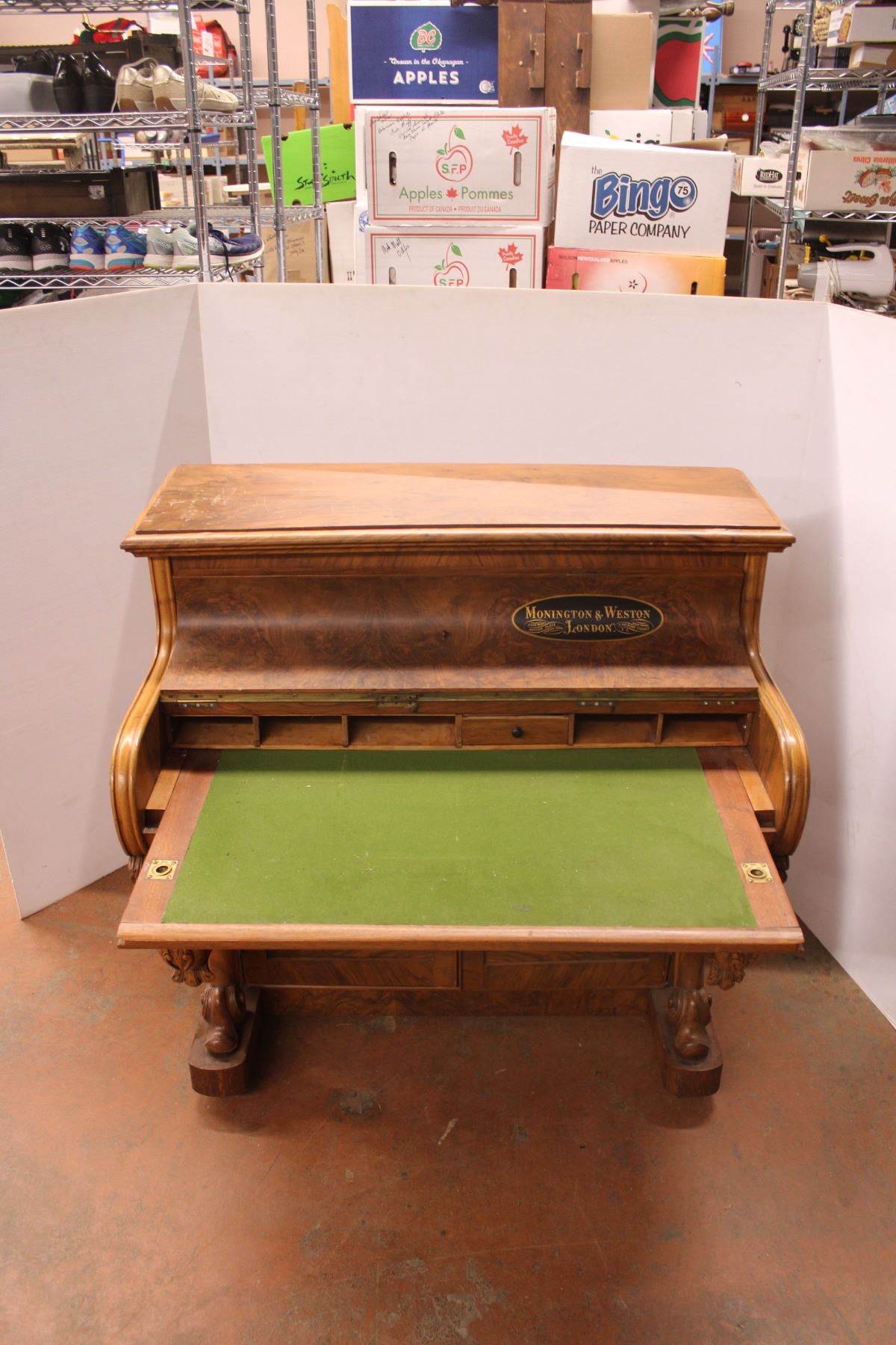 *Victorian Burled Wooden Desk with Slide Out Writing Tray - 25" x 36" x 38 1/2"
