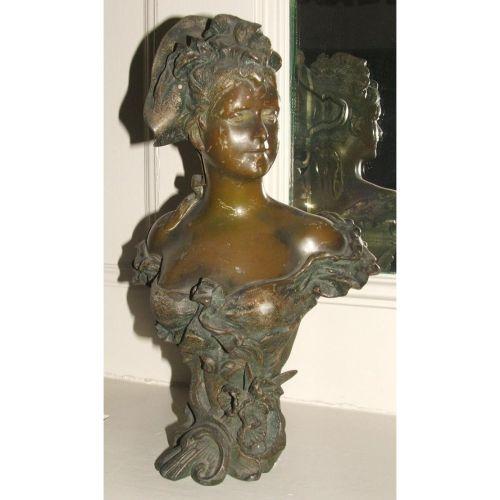 unsigned. Victorian. Late 19th century. Pot metal with a bronze finish. 11" high