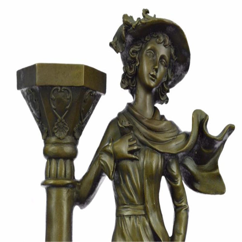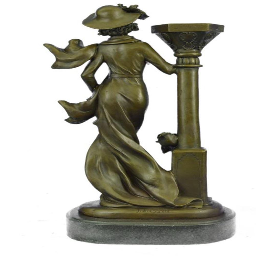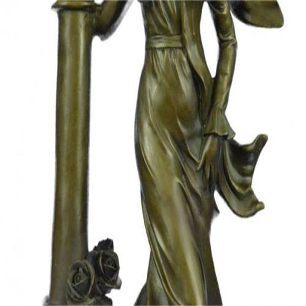 This candelabra is a superb reproduction from the past. Made with Bronze and hand painted, this candelabra features flowing lines and rich details. The dreamy and sensuous beauty, combined with functions for everyday use, delivers the essence of Art Nouveau and provides a captivating visual focus. Bronze Dimensions with Marble Base: Height 17 X Width 8 inches. Weight: 18 LBS.