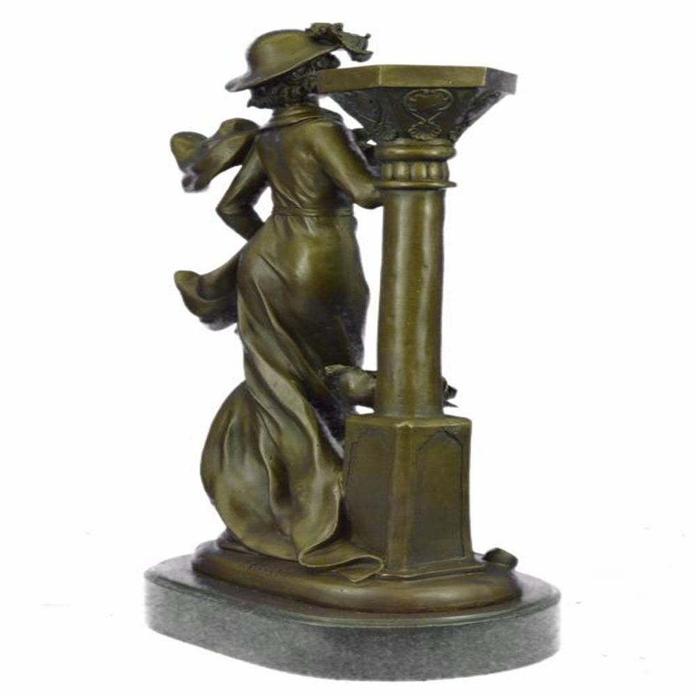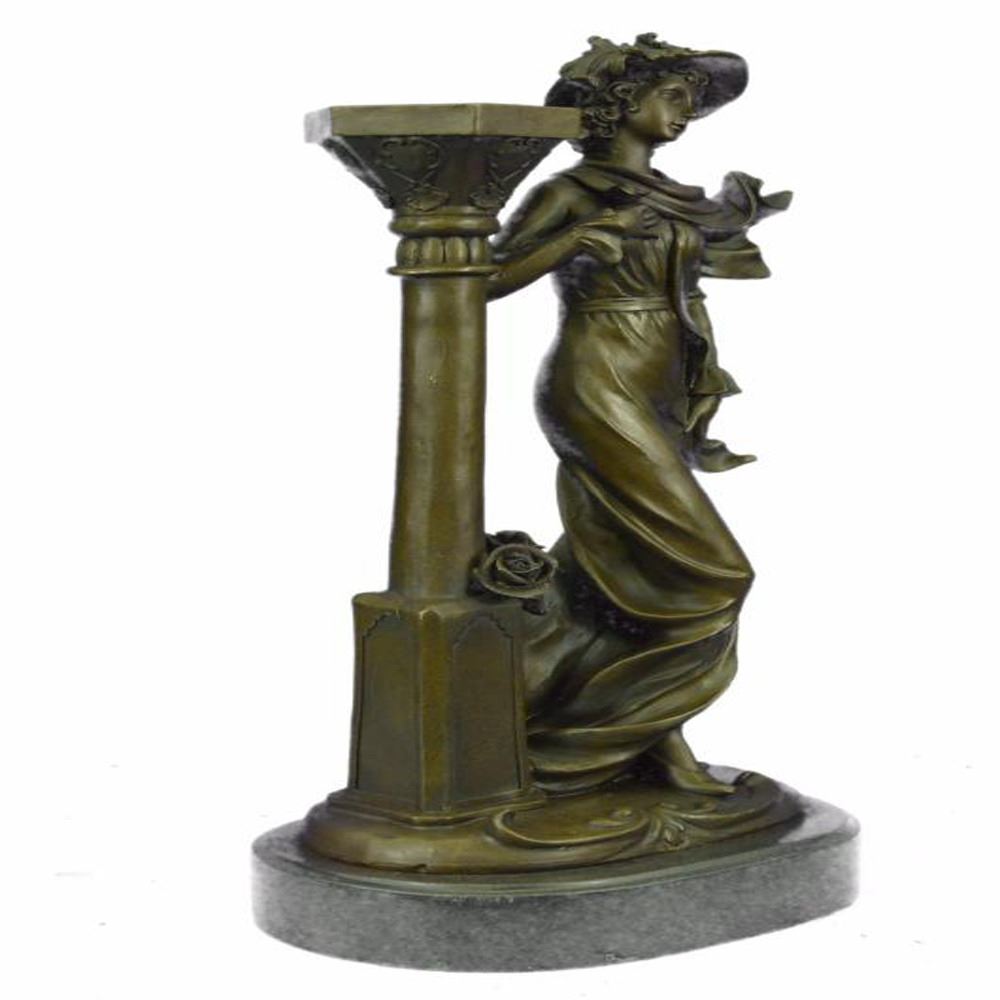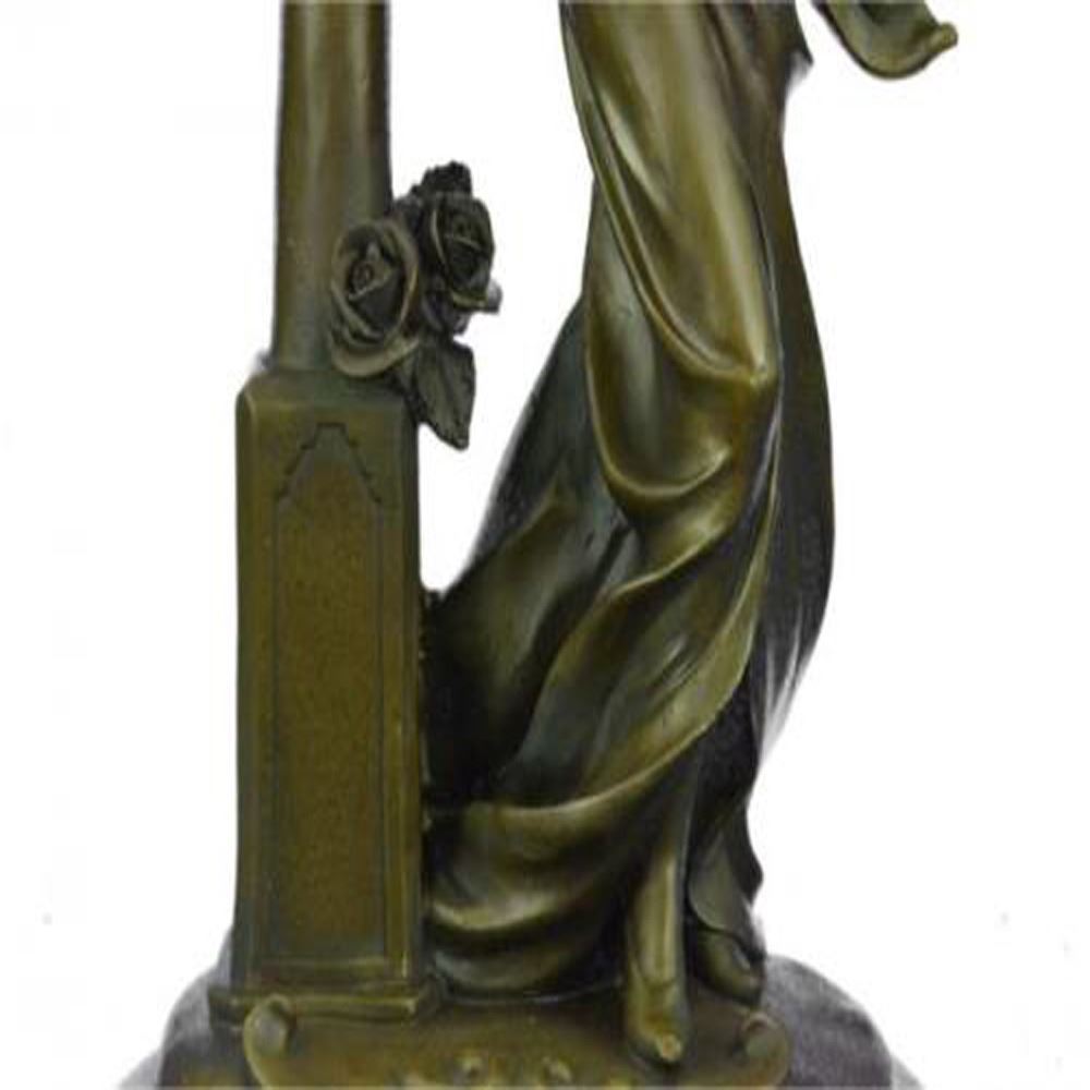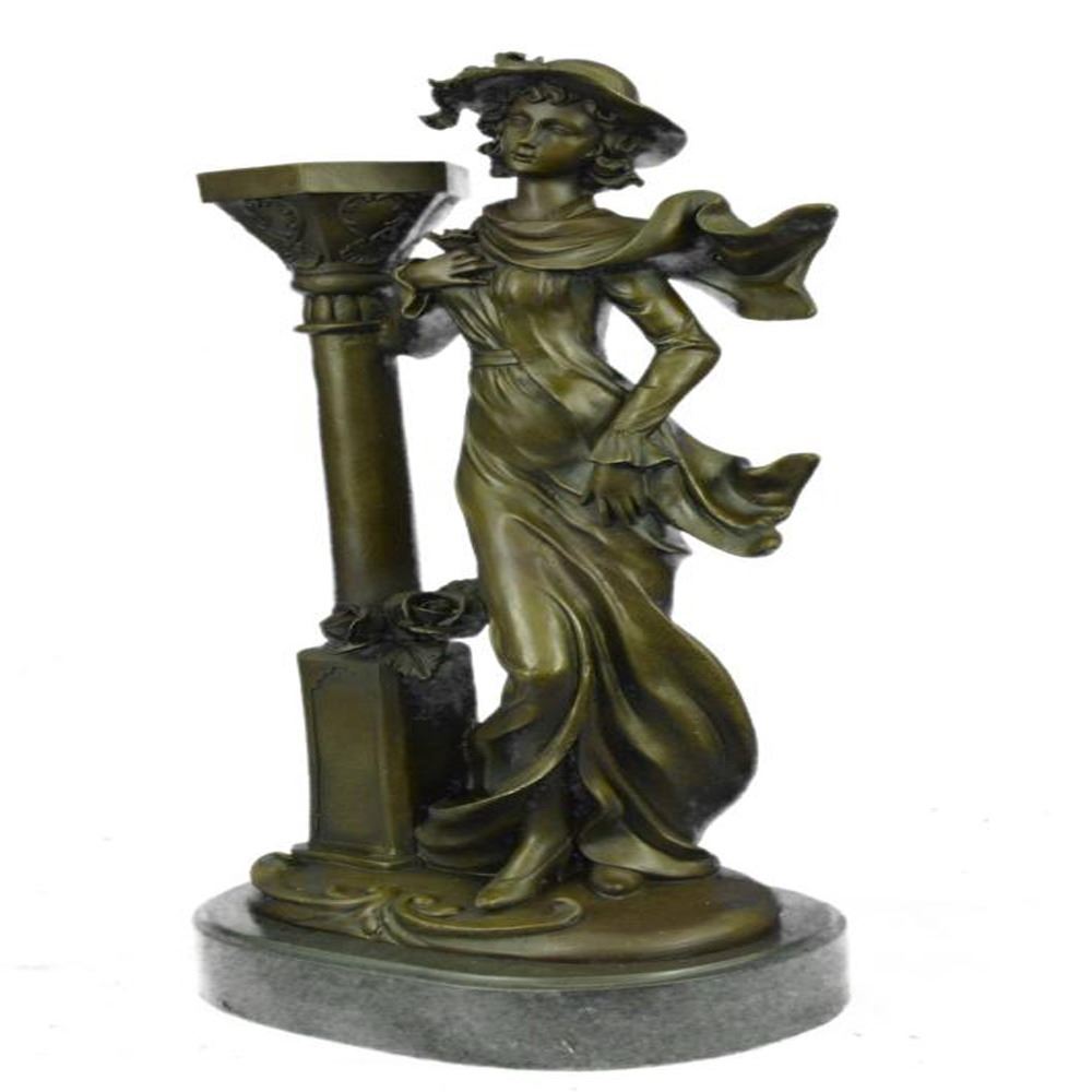 This candelabra is a superb reproduction from the past. Made with Bronze and hand painted, this candelabra features flowing lines and rich details. The dreamy and sensuous beauty, combined with functions for everyday use, delivers the essence of Art Nouveau and provides a captivating visual focus. Bronze Dimensions with Marble Base: Height 17 X Width 8 inches. Weight: 18 LBS.