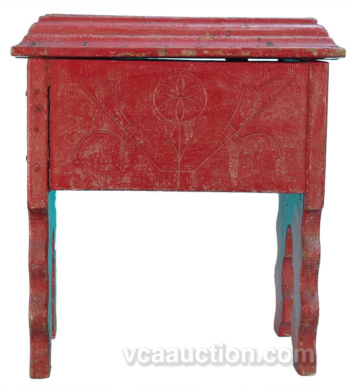 Victorian Carved & Red Painted Bedside Stool w/ Compartment