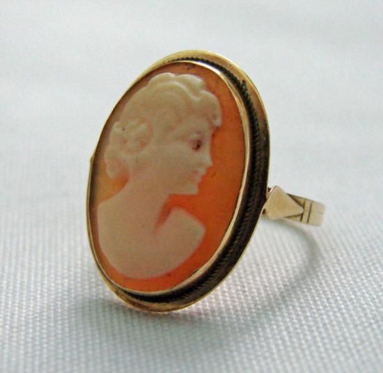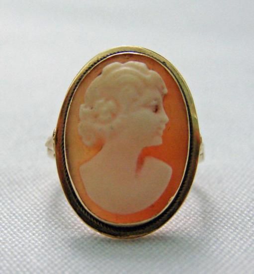 Victorian Carved Shell Cameo 14k Gold Ring MWF907