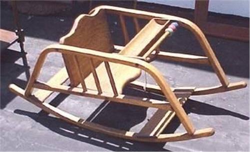 A fine Victorian era child's oak rocker. Professional 20th Century upholstery is fantastic in tune w/ the period. Beautiful turnings w/ doweled joints. 31"tx23"dx16.75"w. (5-125)