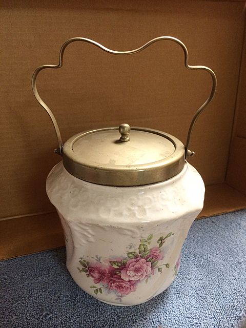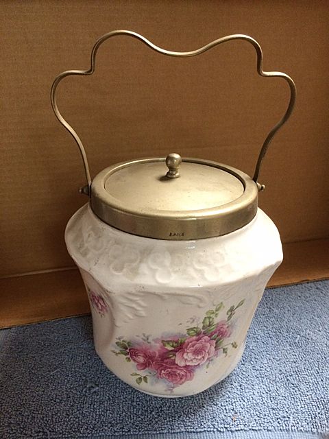 Well over 100 years old! Victorian cracker jar, made in England "Bridewood". Roses going all around it, all original in nice condition.