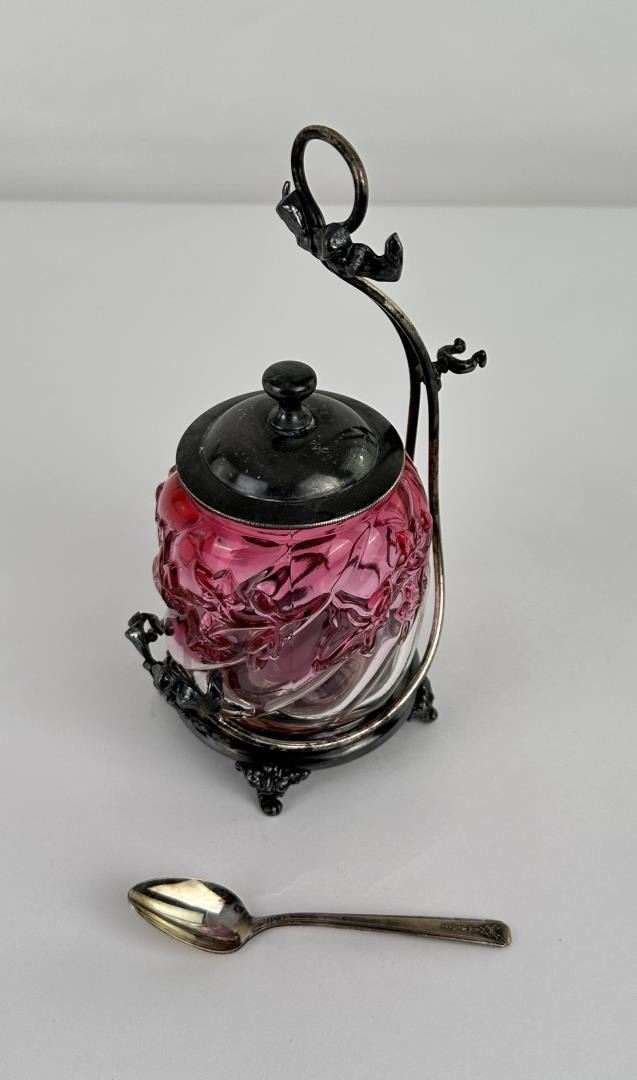 Quite pretty, missing the set of tongs. 7 7/8" tall.