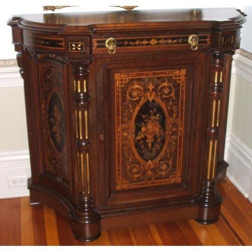 Victorian. Late 19th century. Mixed inlaid wood. 42" high by 46" wide