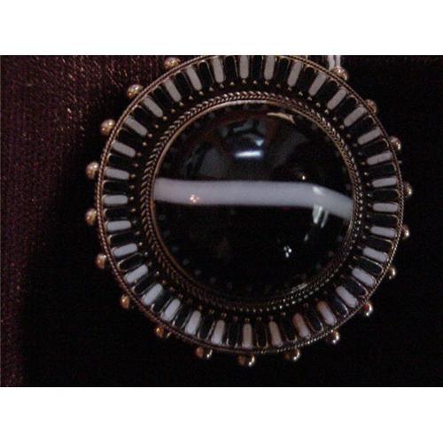 Fabulous Victorian 14 Kt yellow gold, striped agate with black and white enamel. Locket back. Brooch is in fabulous condition!