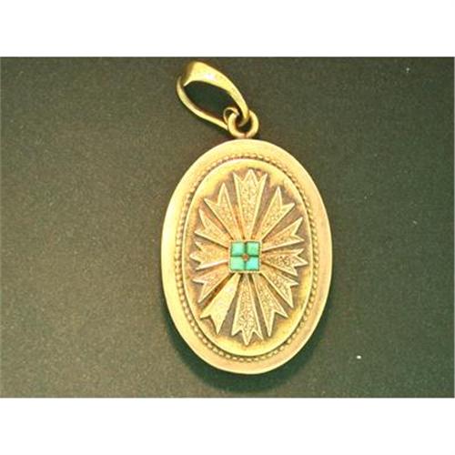 <tr><td>Title:Victorian English Locket with Turquoise in 15k</td></tr>